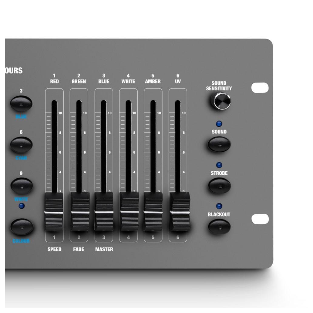O Controlador Cameo Control 54 DMX fornece controle de iluminação detalhado para até 9 equipamentos ou grupos de acessórios num formato compacto simples e intuitivo. O Control 54 possui 54 canais, 9 predefinições de cor e 6 faders para controle de intensidade UV RGBWA + individual. As predefinições de cores apresentam botões de acesso rápido que funcionam como seletores de acessórios. Além disso, o Control 54 é equipado com vários botões de função que permitem o access direto access Ativação de Som, dando a você controle sobre os modos de sensibilidade do microfone, estrobo, Pretoout, salto de cor, desbotamento de cor e automático / manual. Um visor LC intuitivo fornece feedback visual sobre a função e os parâmetros atuais. O controlador inclui um adaptador de energia CC de 9-12V, mas também pode ser alimentado uma bateria de 9V. O Cameo Control 54 é totalmente compatível com todas as barras LED Cameo, Par Cans (incluindo as series Flat Par Pro e Flat Par 1), bem como outros equipamentos com mistura de cores RGB, RGBW, RGBWA e RGBWA + UV. Tipo de controlador: Mezclador DMX Número de canales DMX: 54 Control: Protocolo USITT DMX 512 Acceso directo: Macros de color de salto de color estroboscópico Control manual Control de música Modo automático Corte de energía Desvanecimiento de color Salida DMX: XLR hembra de 3 pines Controles: 22 botones de control Controlador para sensibilidad del micrófono Interruptor de encendido/apagado Faders de 6 canalesIndicadores: Pantalla LC Voltaje de funcionamiento: Fuente de alimentación externa, bloque de 9 V, 9 a 12 V CC Color: gris Material: Metal Dimensiones: 6 mm x 63 mm x 140 mmPeso: 1,5 kg Accesorios incluidos: Fuente de alimentación - Bloque de 9V